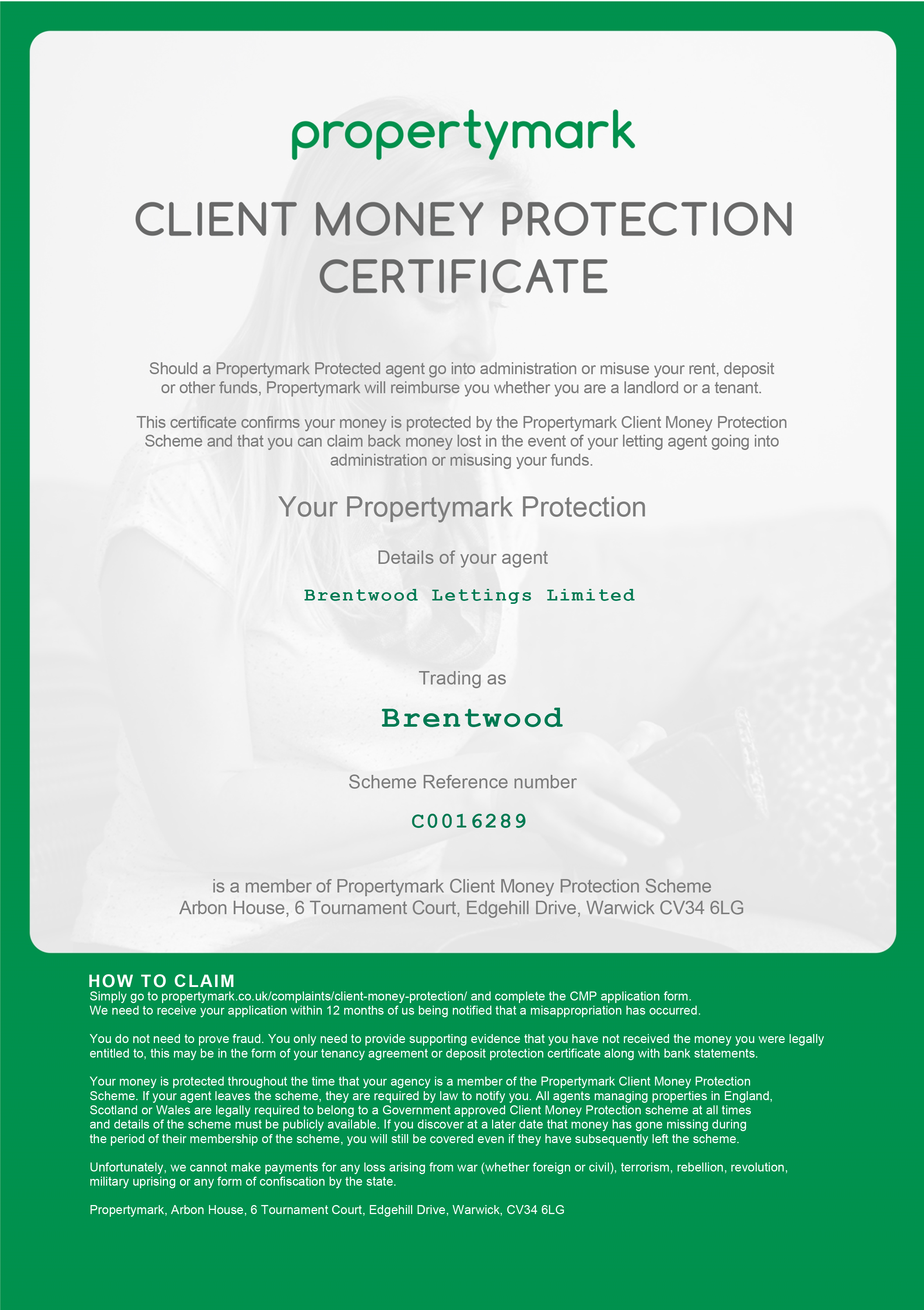 We are proud to display our Property Management Protection Certificate, which is evidence of our commitment to adhering to the highest standards of property management in the United Kingdom. This certification assures both landlords and tenants that we operate in compliance with all regulatory requirements, demonstrating our dedication to offering you a professional and transparent service